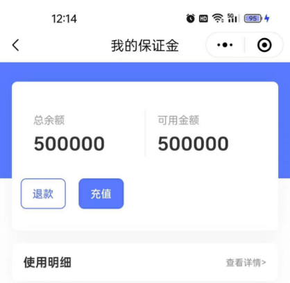 3.竞价开始之前参加竞价的承运企业需提前在微信小程序“焦通天下车队端”查看确认账户保证金余额是否与本次竞价所需保证金金额相符,及保证金账户状态是否正常,保证金正常状态如图: